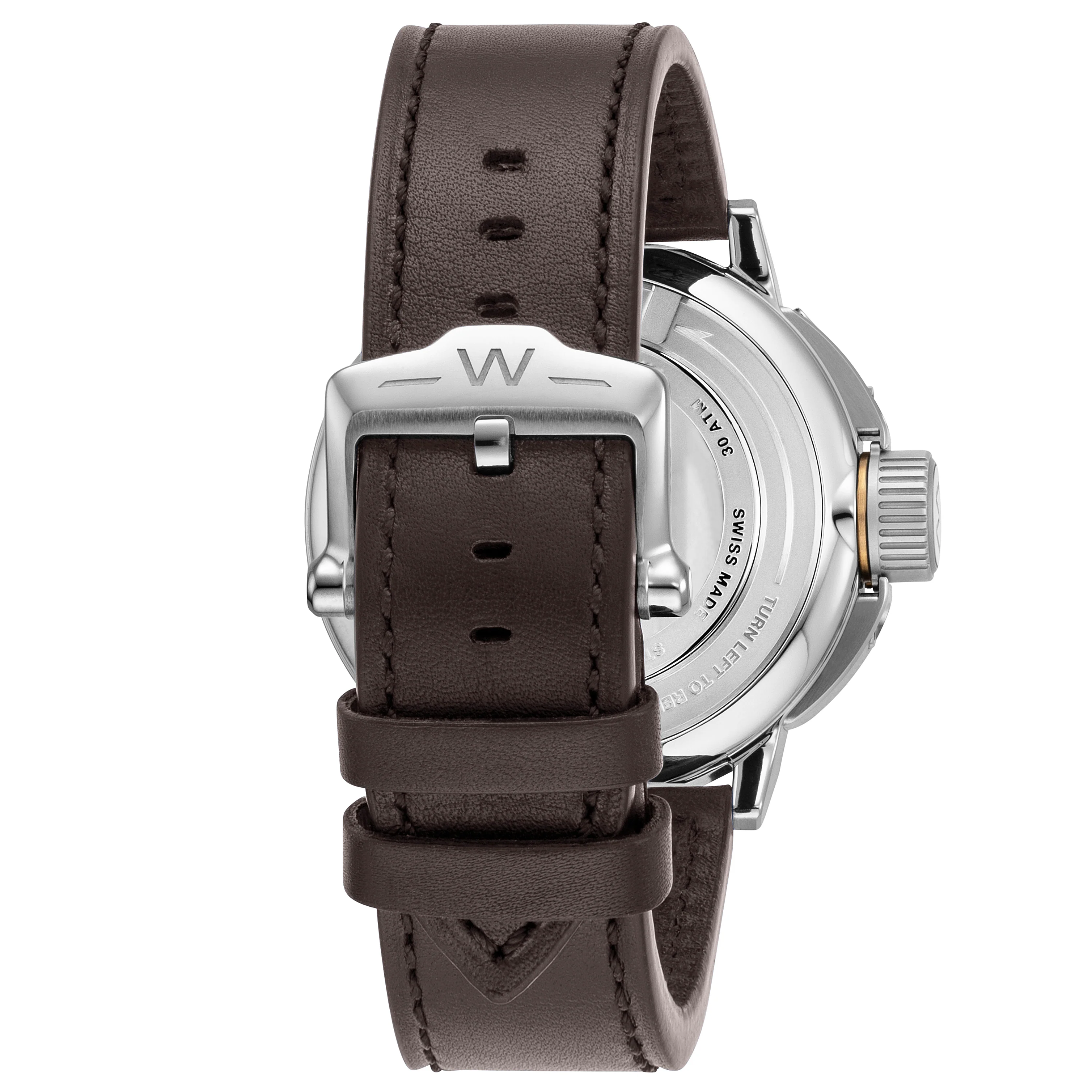 | Leather strap | Brown genuine calf leather, Hand made in Italy | |||